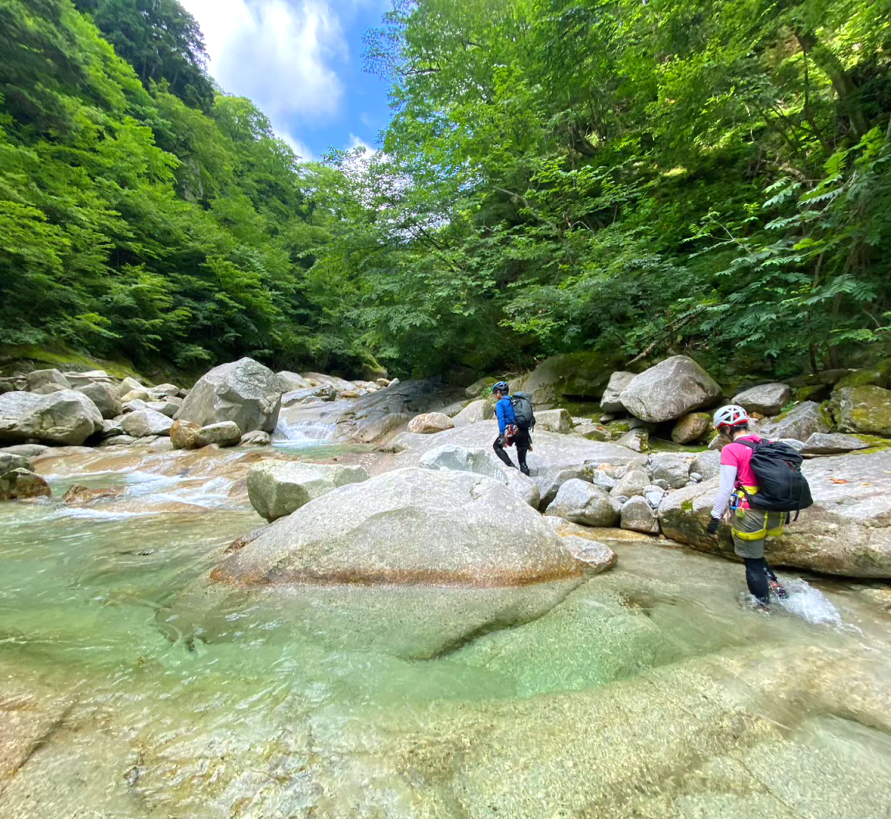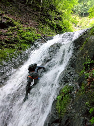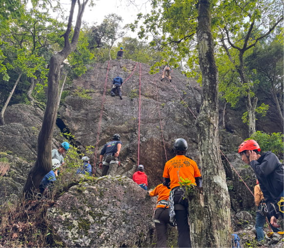 岩登りと沢登りを事前に勉強会でギア講習などを経て、実際に岩ゲレンデや初級程度の沢で実践します。