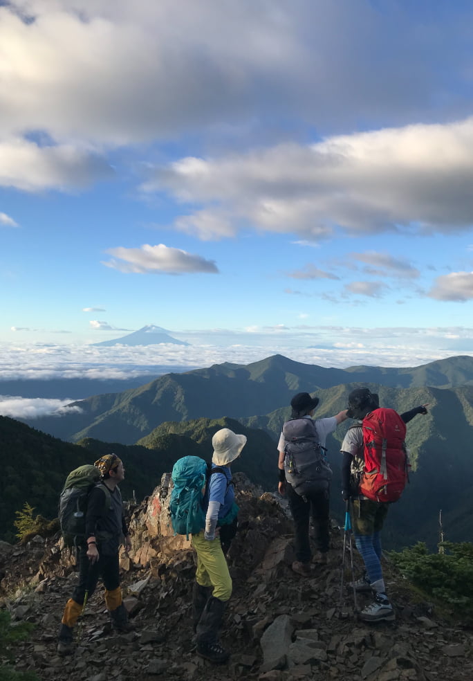 本会は、ハイキングから初級バリエーション(岩登り、沢登り、雪稜、アイスクライミング)まで、幅広い活動を行っている山岳会です。サークルに比べると「山岳会」は少し堅いイメージがあるかもしれませんが、当会は基本登山から初級バリエーションまでが中心で、そこまでガチガチに厳しい雰囲気ではありません。